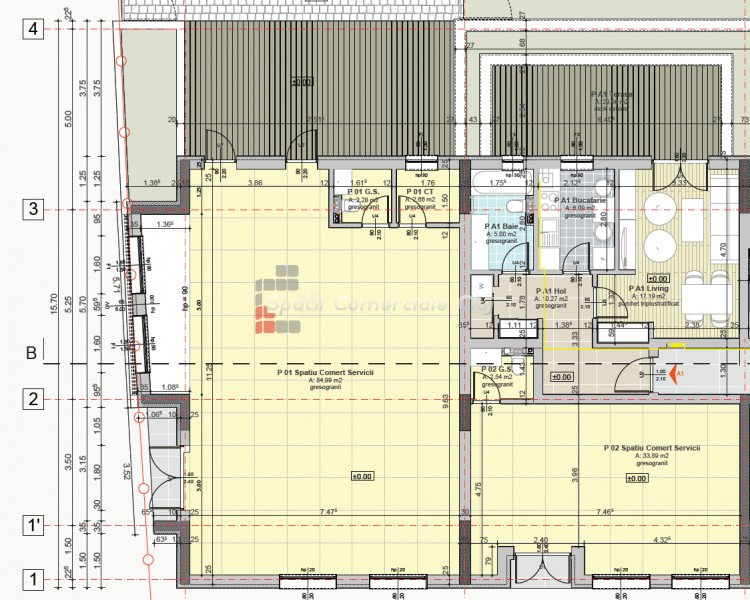 Imobilul ce face obiectul vanzarii este compus din urmatoarele: parter: spatiu comercial - 130 mp + spatiu comercial 33 mp; apartament cu o camera 40 mp + terasa de 30 mp; etaj: apartament cu 3 camere - 72 mp + 3 balcoane; subsol: spatiu depozitare 55 mp + o parcare subterana. Exista 6 parcari in fata spatiului comercial, intabulate pe un CF individual de teren. Toate acestea sunt inchiriate catre o multinationala cu cifra de afaceri de peste 1 miliard de euro, avand contract pe urmatorii 5 ani la pretul de 2200 de euro/luna + TVA.